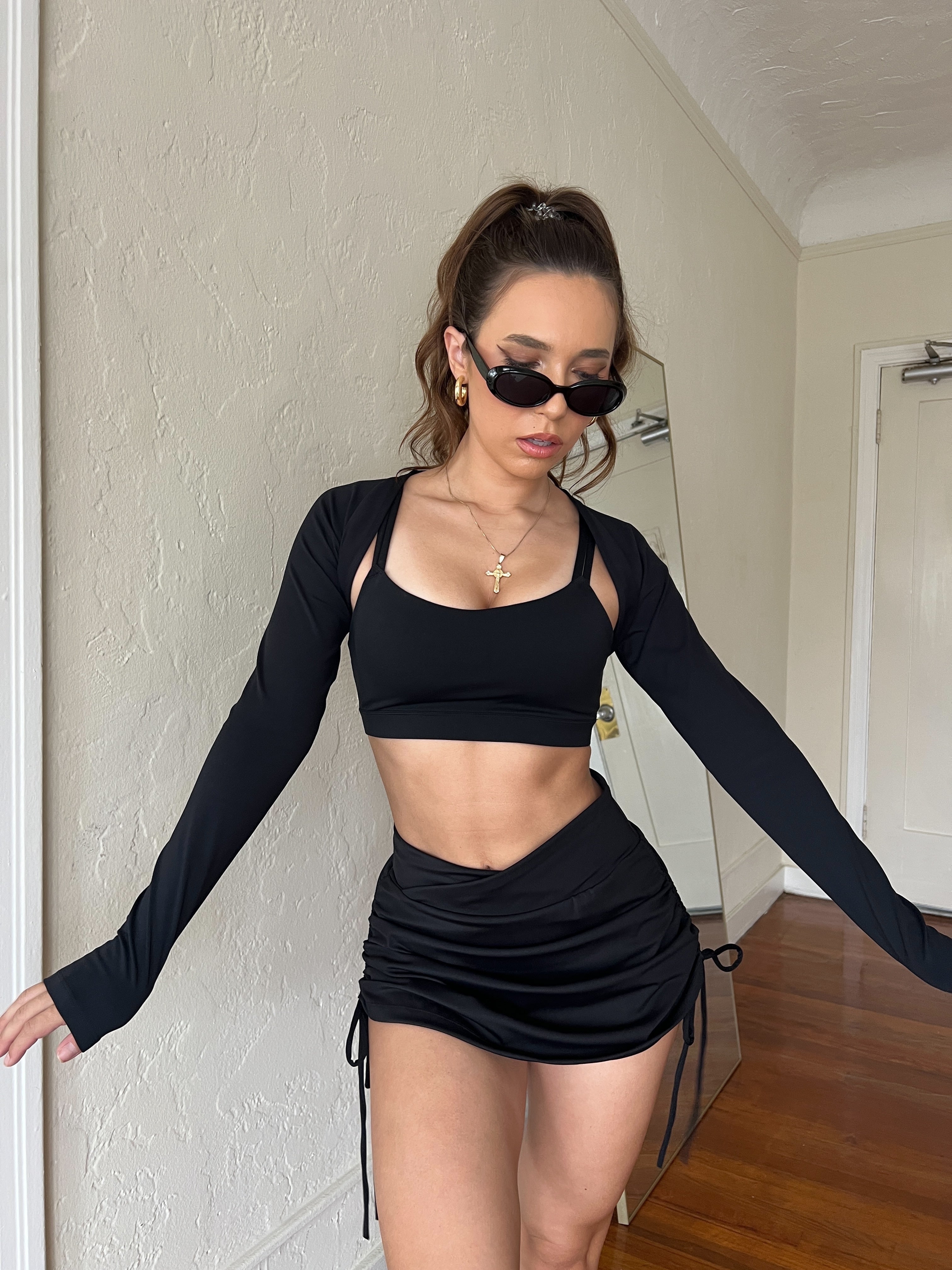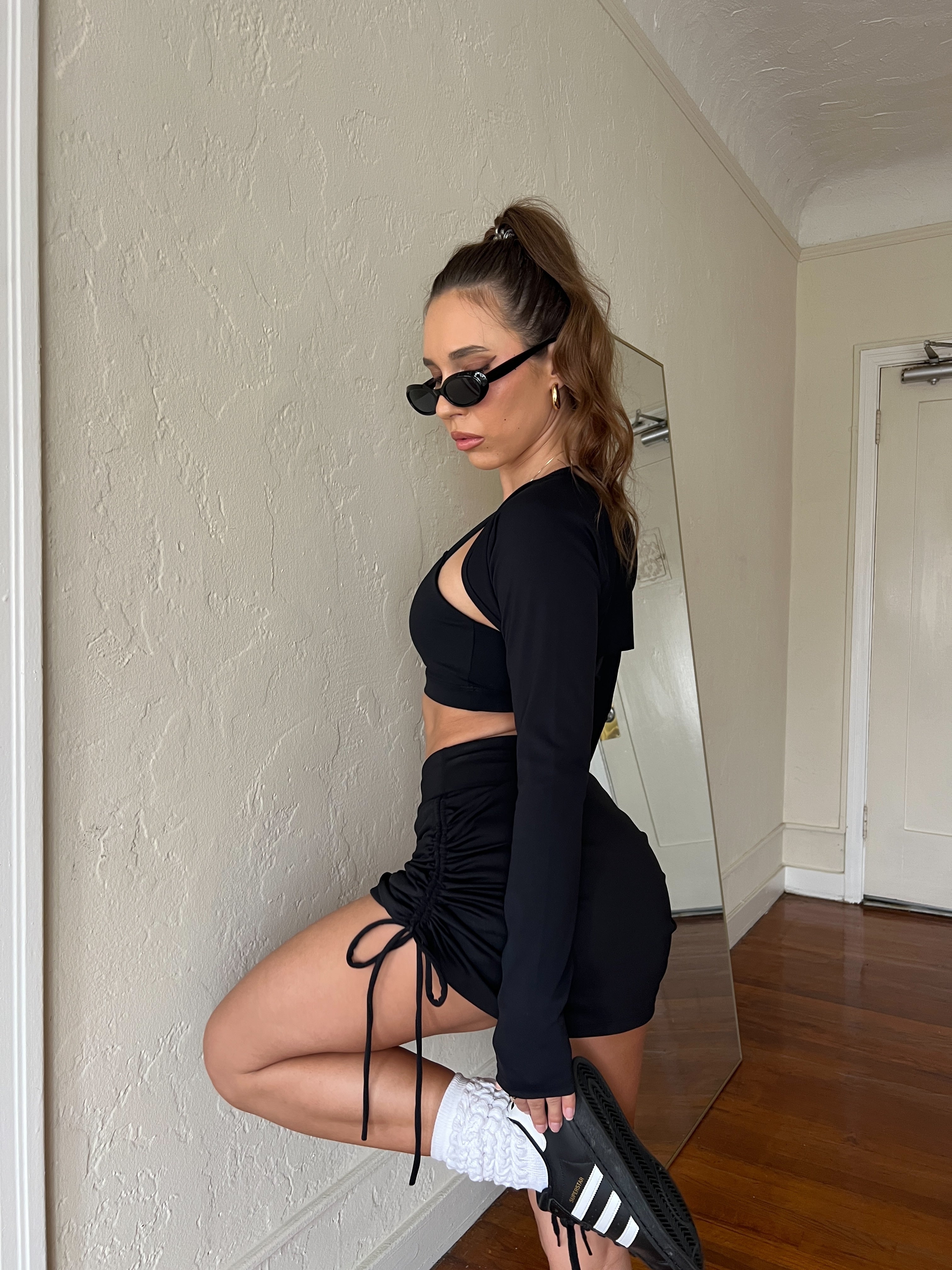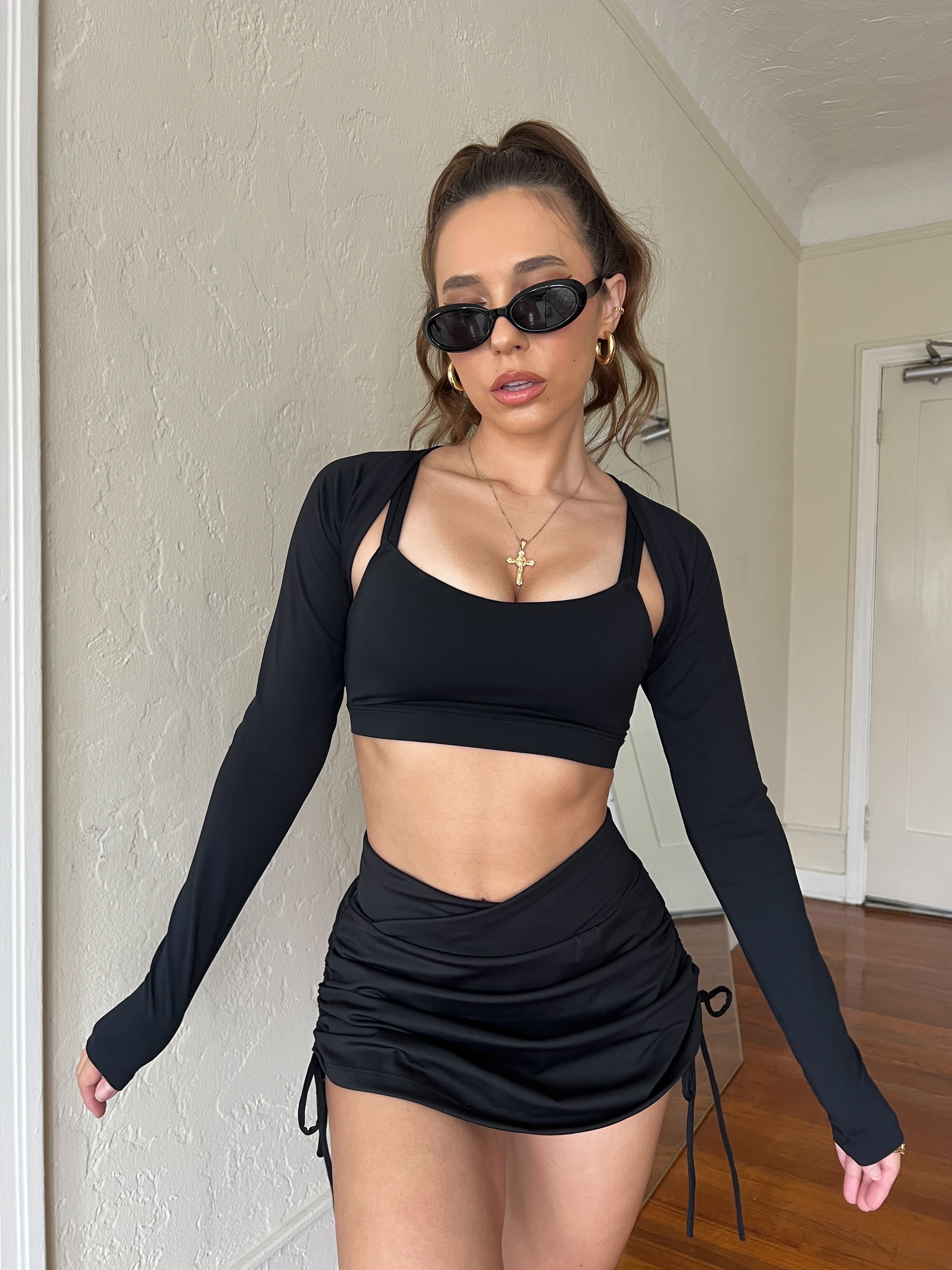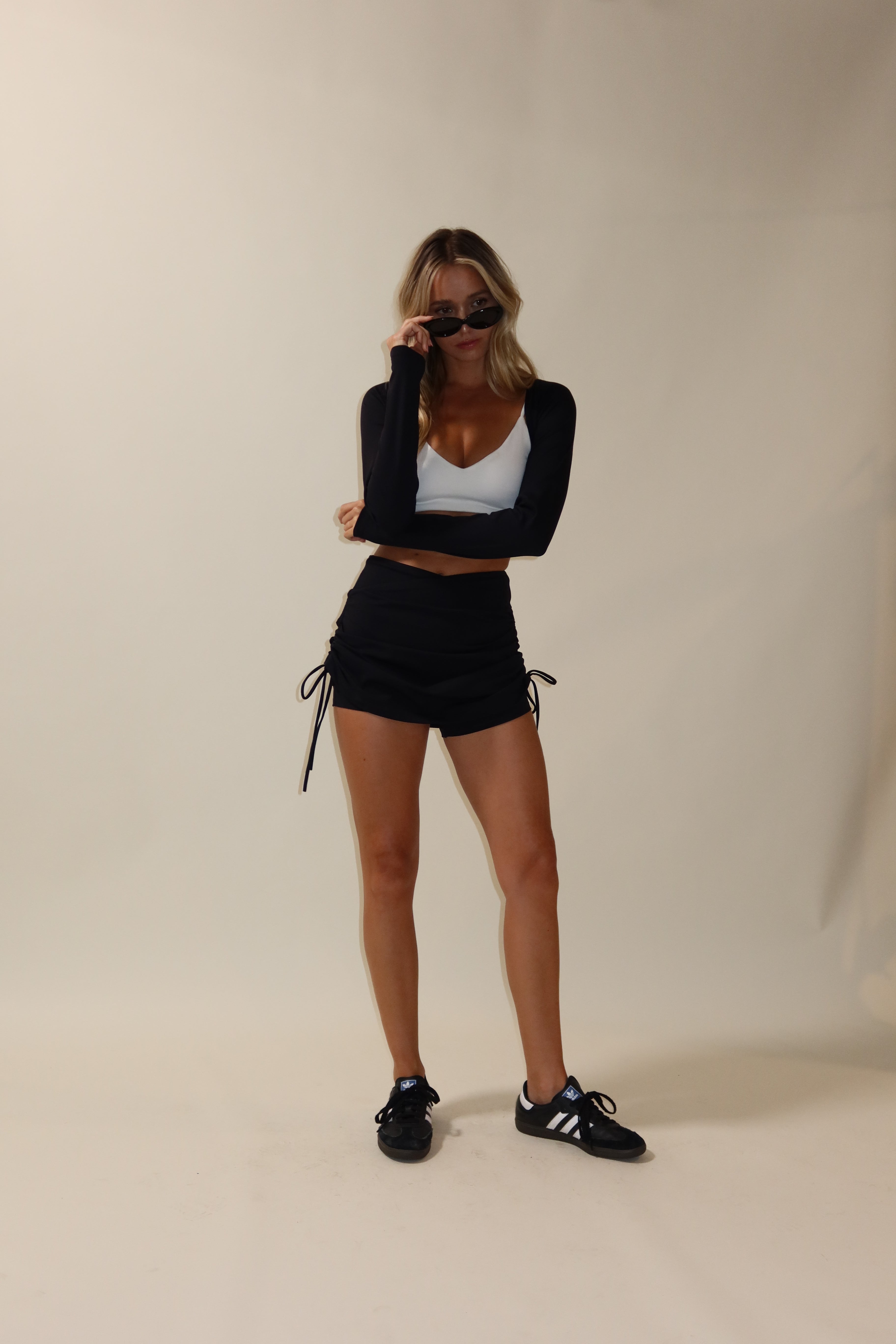 V Neck Ruched Crop Top